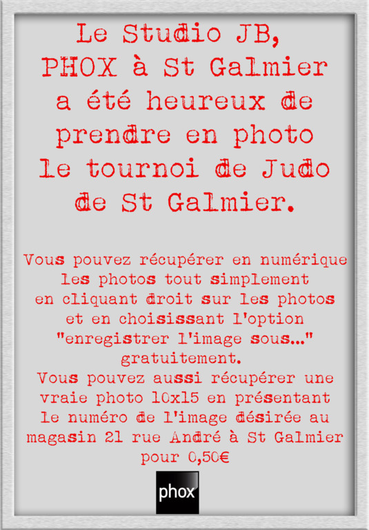 Mais vous pouvez aussi récupérer une vrai photo10X 15 chez notre partenaire phox photo à St Galmier pour 0€50. Il vous suffit pour cela d'avoir le numéro de la photo désirée.